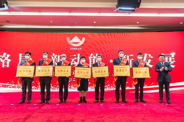 會議對招金集團2021年先進集體和個人進行了表彰,招遠市委書記王彥博,招遠市委副書記、代市長史鑫,招遠市委常委、煙臺市委提名副市長劉超分別為獲得“標兵企業(yè)、優(yōu)秀企業(yè)、先進企業(yè)”獎、“優(yōu)秀企業(yè)家”獎和“對標管理優(yōu)勝企業(yè)”獎的先進集體和個人進行了頒獎。