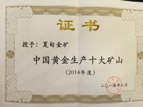 夏甸金礦榮獲2014年“中國黃金生產(chǎn)十大礦山”稱號