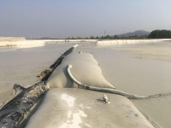 面臨新時代安全環(huán)保的新形勢、新要求,蠶莊金礦大膽創(chuàng)新工作理念,積極拓展尾礦庫筑壩新技術(shù),進(jìn)一步拓展以尾礦庫治理為新的專業(yè)研究方向,率先引進(jìn)尾礦庫模袋法筑壩的新工藝。2020年,蠶莊金礦在尾礦庫筑壩和優(yōu)化改建工程中,采用模袋充填堆筑庫內(nèi)分區(qū)排礦擋水圍堰的方式,全面打造出了一項(xiàng)環(huán)境保護(hù)與工程安全雙結(jié)合的示范工程,實(shí)現(xiàn)了安全效益、環(huán)保效益、經(jīng)濟(jì)效益三者的有機(jī)結(jié)合。
