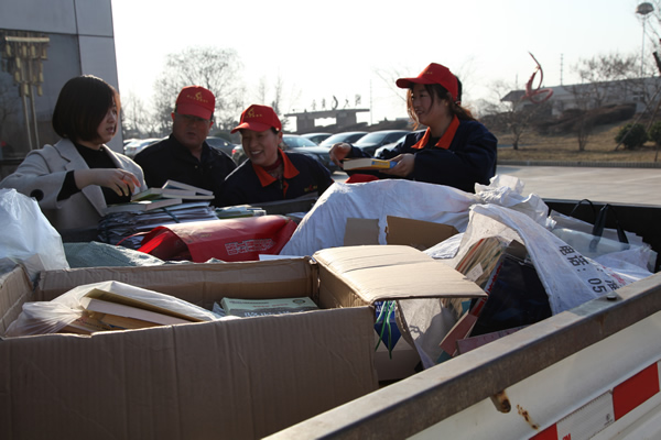 活動中,前來捐贈書籍的干部職工絡(luò)繹不絕,青年職工踴躍加入到志愿服務(wù)行列,協(xié)助清點、整理、搬運……不到一個小時,現(xiàn)場獲贈的廢舊書籍、報刊已經(jīng)裝滿一車?;顒咏Y(jié)束后,公司第一時間將收集的廢舊書刊運送到了團市委設(shè)置的回收點。